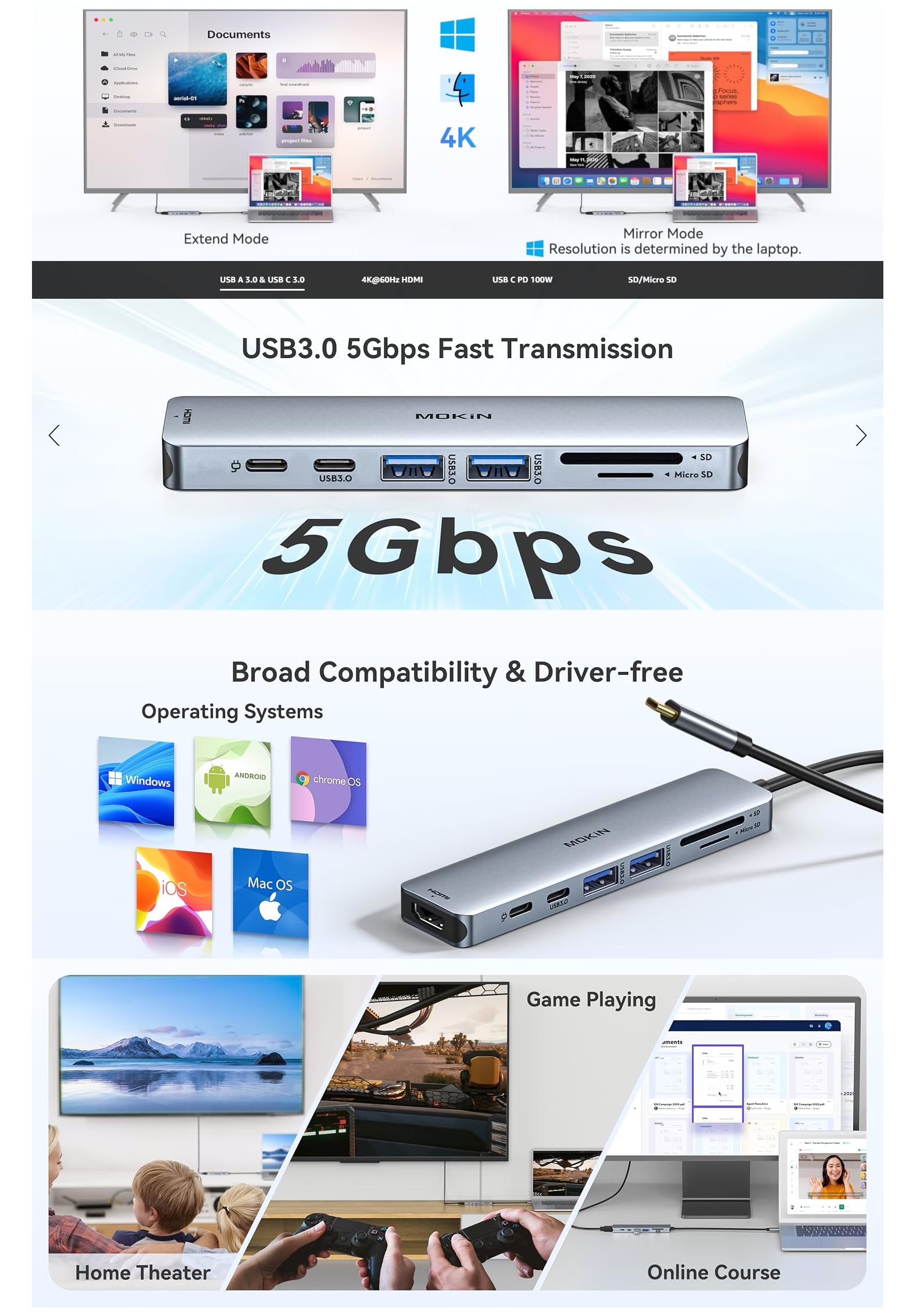 USB C Hub HDMI Adapter for MacBook Pro/Air, MOKiN 7 in 1 USB C Dongle with HDMI